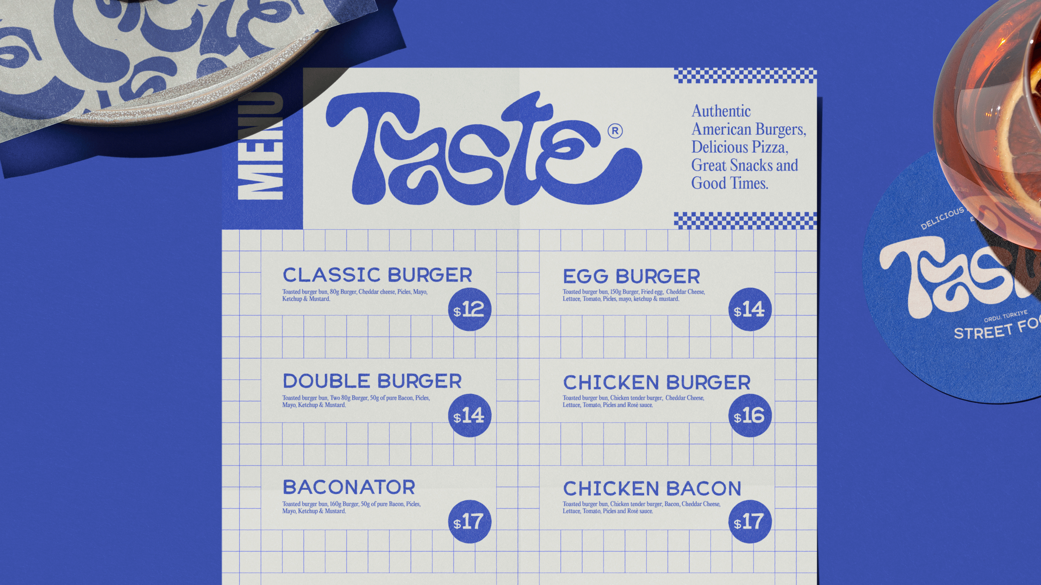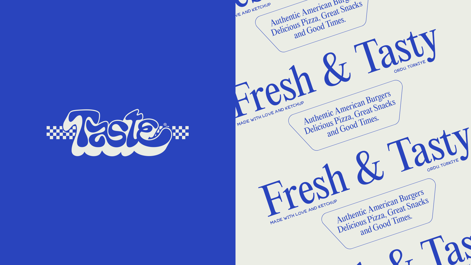 Taste is a burger and pizza restaurant in Ordu, Turkey, reimagined through a complete rebrand with a modern identity and American diner references. From logo to print materials, every customer touchpoint was redesigned to feel cohesive, warm, and unmistakably Taste.